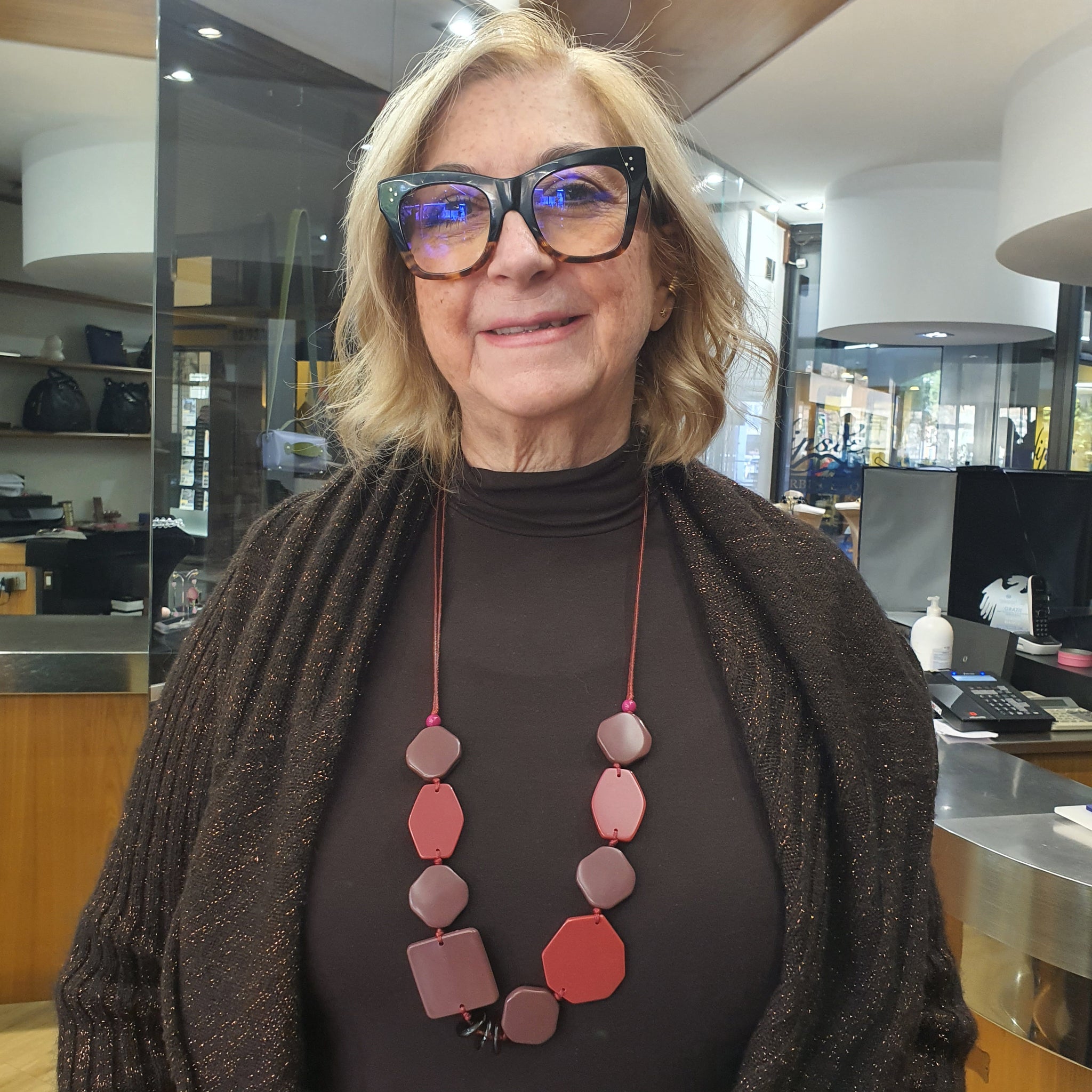 La collana in resina bordeaux proviene dalla nostra ricerca dei gioielli che più ci hanno ispirati e hanno accolto la nostra passione per l'eleganza intramontabile della raffinatezza. La femminilità più profonda risiede nei dettagli, il lato positivo è riuscire a coglierli.