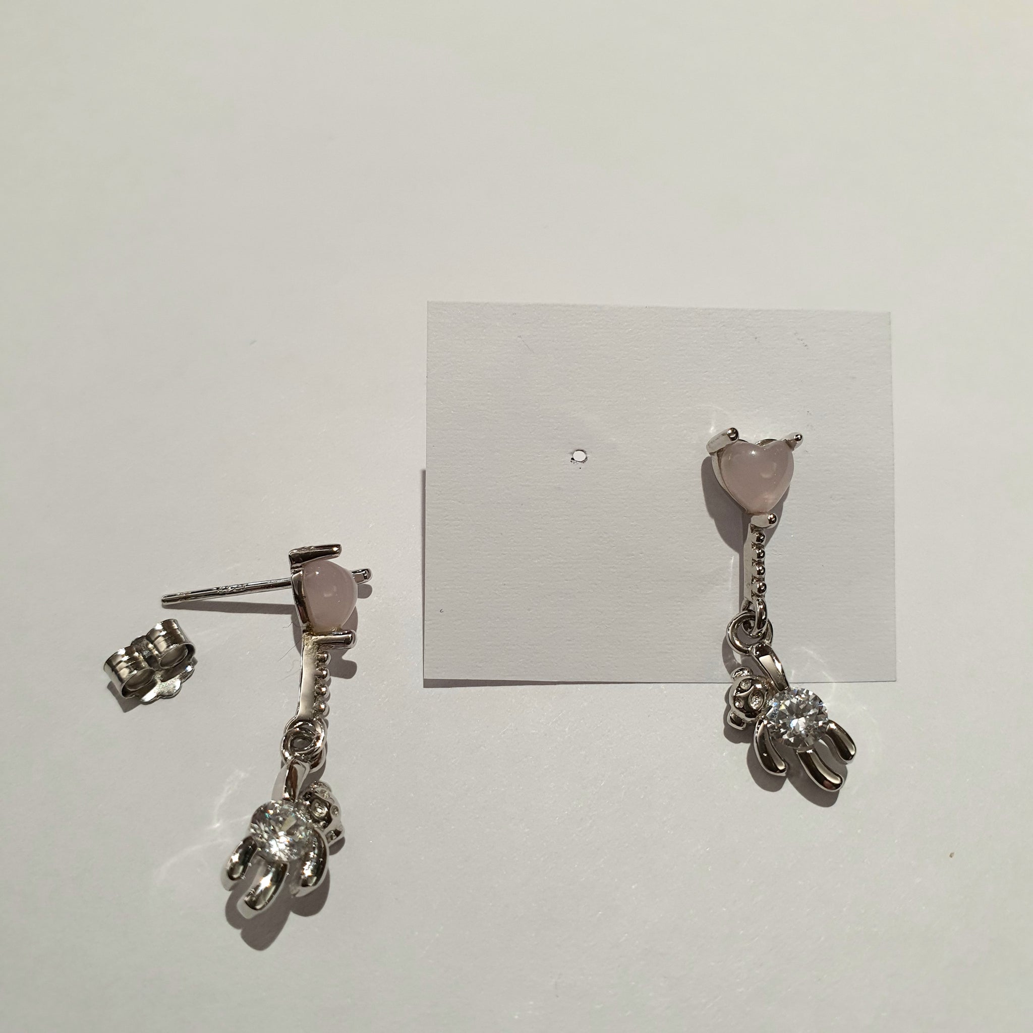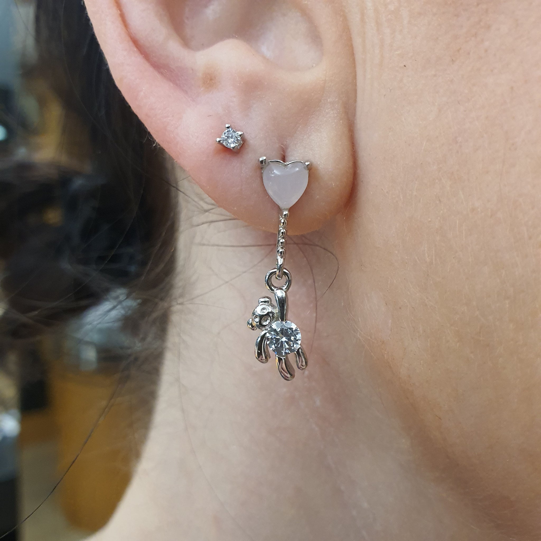 Coppia di orecchini con orsetti pendenti, provengono dalla nostra ricerca dei gioielli che più ci hanno ispirati e hanno accolto la nostra passione per l'eleganza intramontabile della raffinatezza. La femminilità più profonda risiede nei dettagli, il lato positivo è riuscire a coglierli.