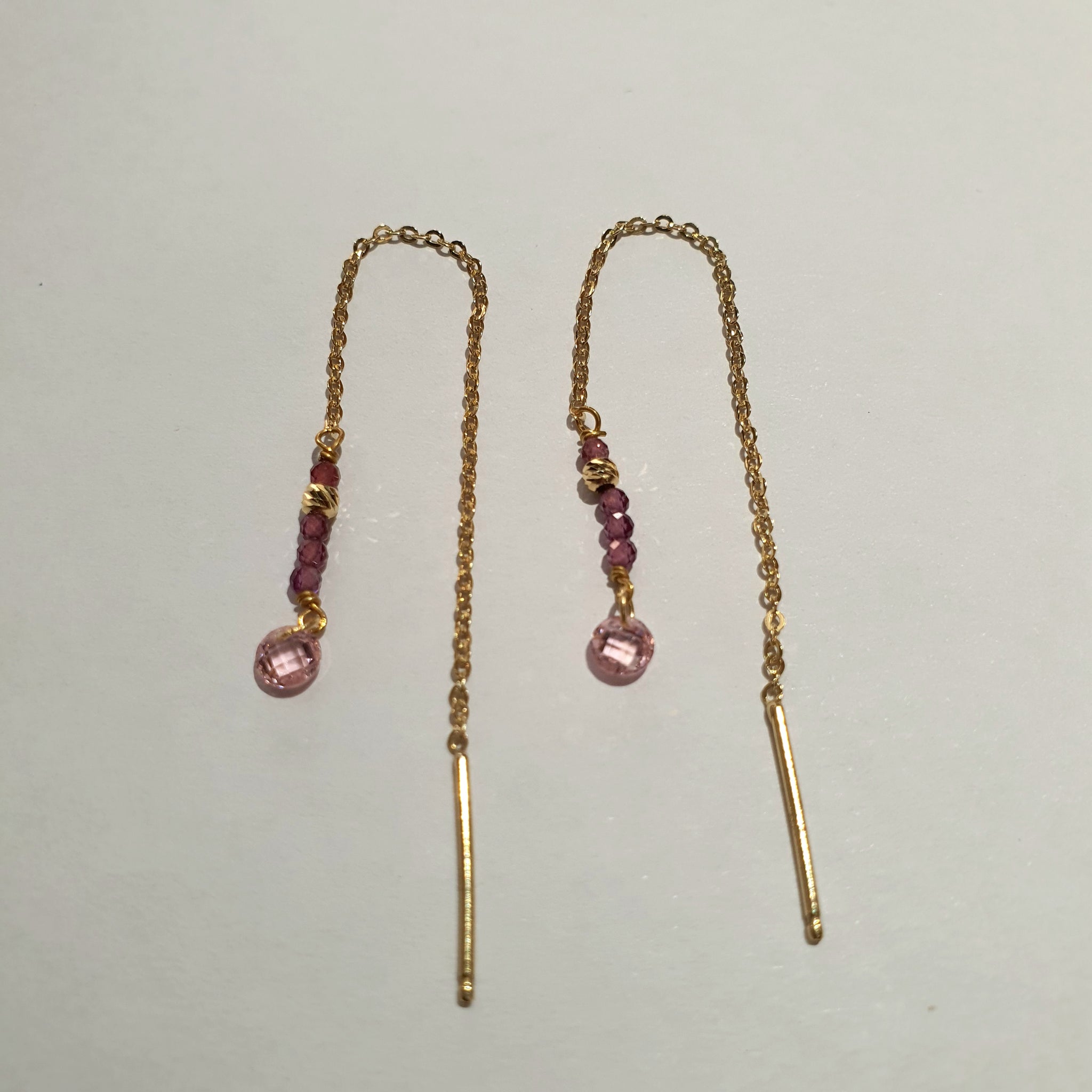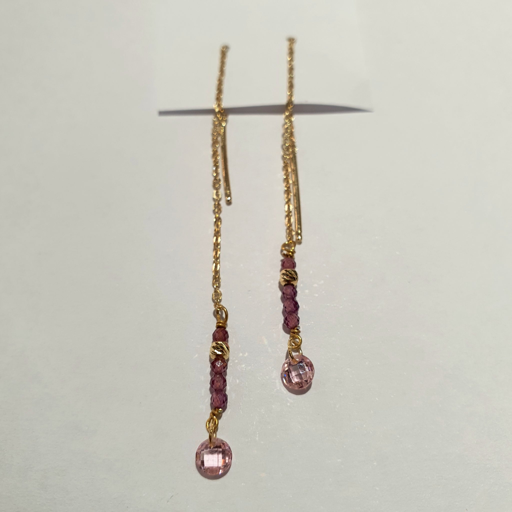 Orecchini coppia saliscendi argento placcato oro e zirconi rosa