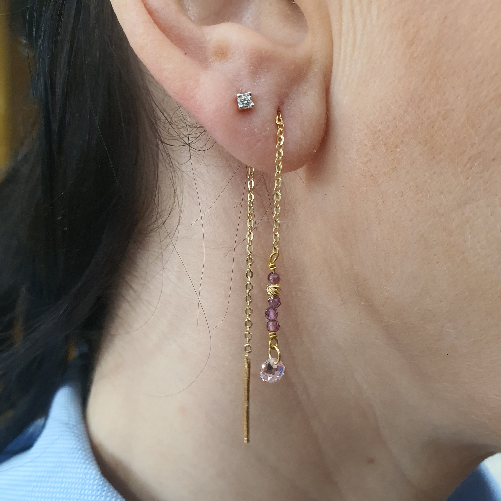 Coppia di orecchini saliscendi, provengono dalla nostra ricerca dei gioielli che più ci hanno ispirati e hanno accolto la nostra passione per l'eleganza intramontabile della raffinatezza. La femminilità più profonda risiede nei dettagli, il lato positivo è riuscire a coglierli.
