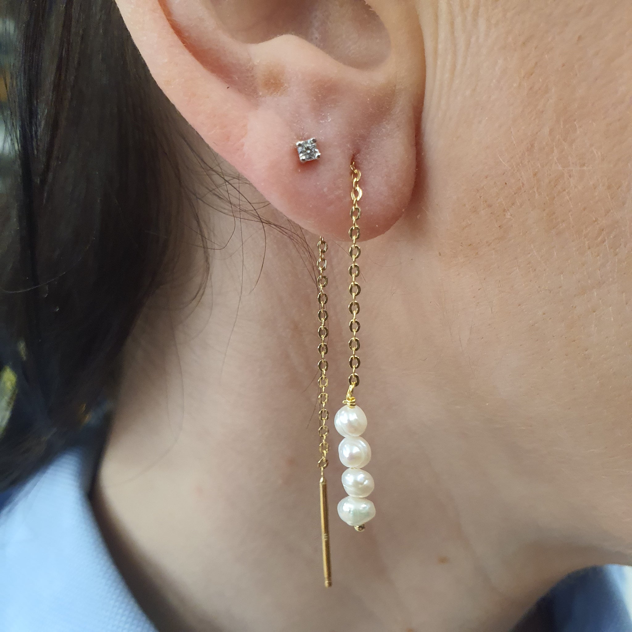 Coppia di orecchini saliscendi, provengono dalla nostra ricerca dei gioielli che più ci hanno ispirati e hanno accolto la nostra passione per l'eleganza intramontabile della raffinatezza. La femminilità più profonda risiede nei dettagli, il lato positivo è riuscire a coglierli.