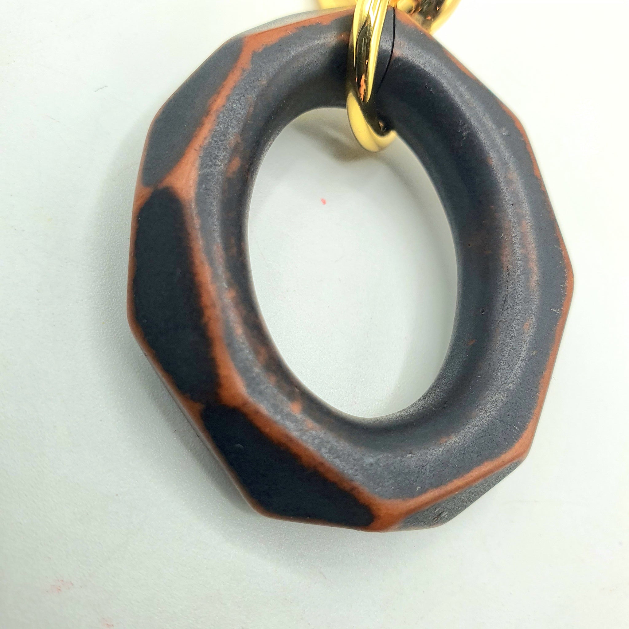 Orecchini pendenti ovali in resina marrone e ottone placcato oro